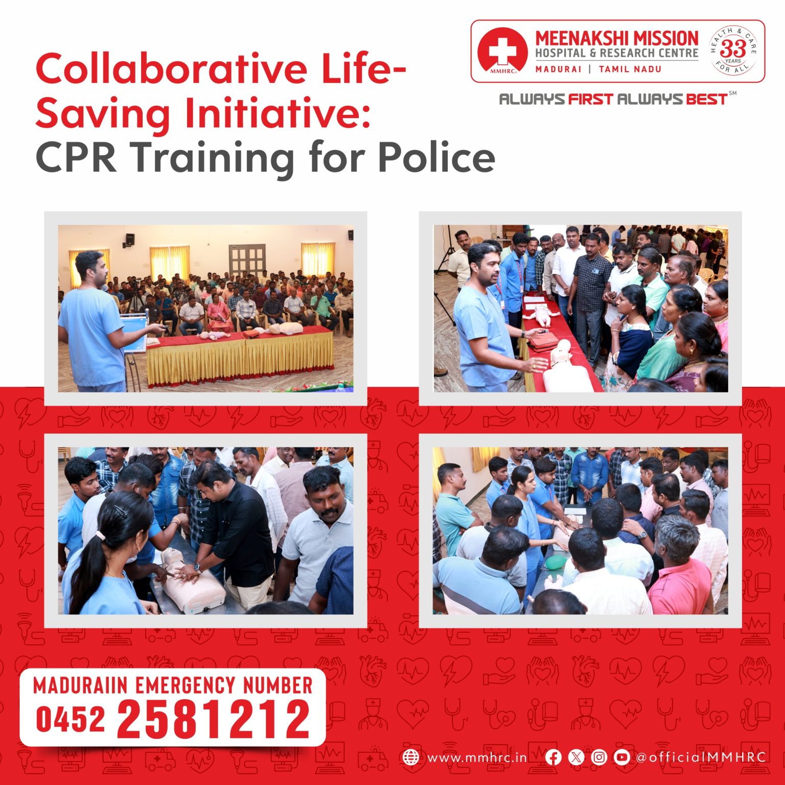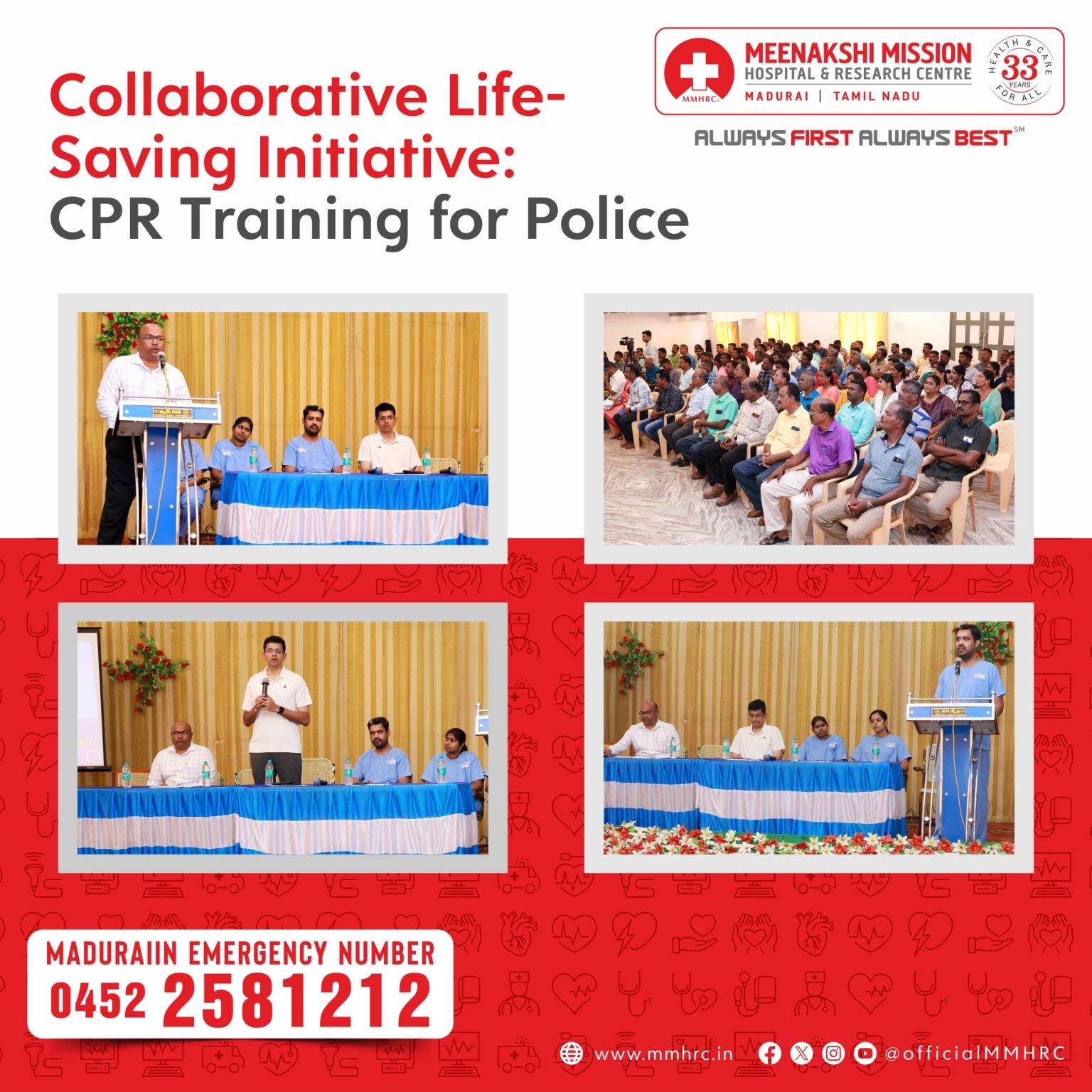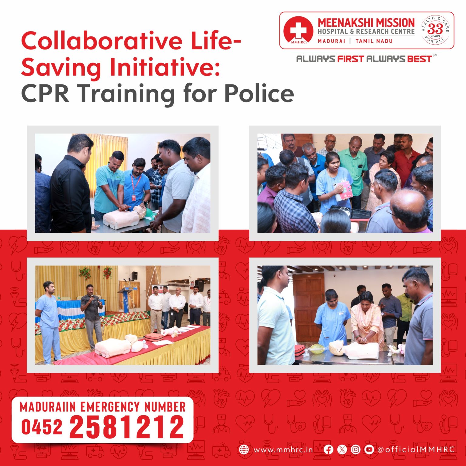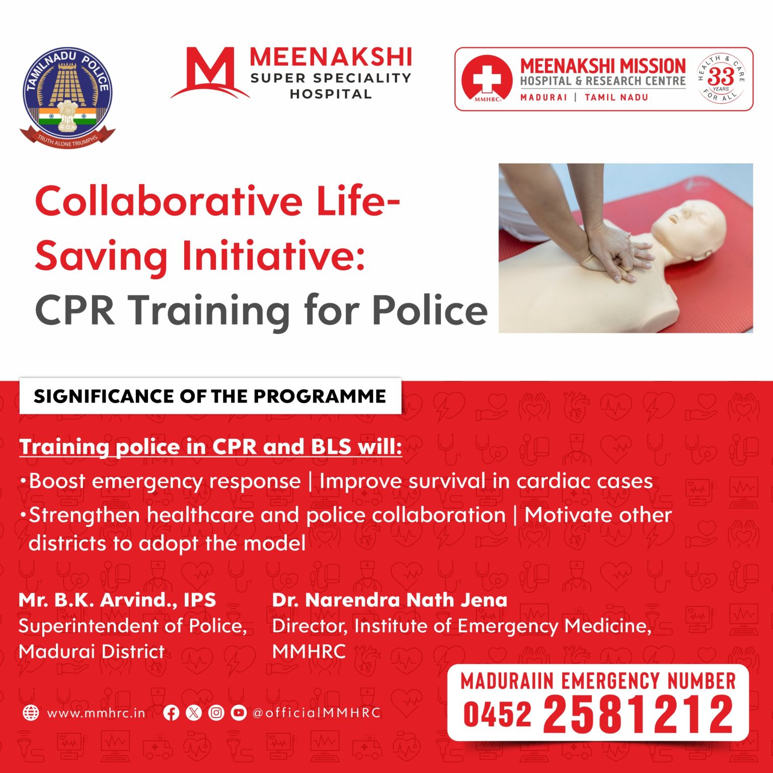 In a pioneering step towards community safety and emergency preparedness, the District Police Office, Madurai , Government of Tamil Nadu, in collaboration with Meenakshi Mission Hospital & Research Centre (MMHRC), has launched a district-wide CPR (Cardio-Pulmonary Resuscitation) and Basic Life Support (BLS) training programme for Madurai District police personnel.